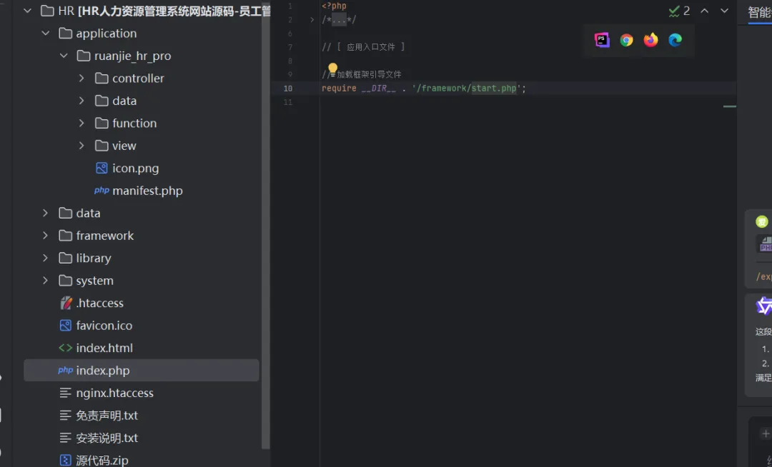 属于自研框架一类,通过index.php定位框架文件