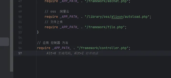 58-69行是设置类控制器和触发方法,也是通过我们的路由传参获取,如果为空则设置为index,其中如果传参的控制器存在.就会替换成/,是对于多目录的调用方式