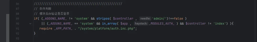 条件2:请求目录为system并且$app包含_MODULES_AUTH_并且$controller不为index