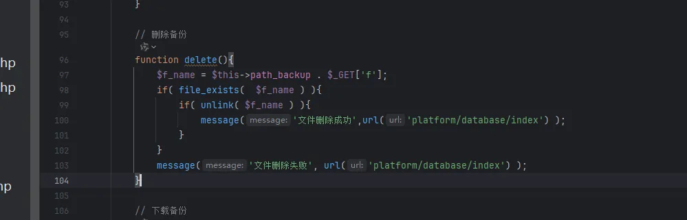 system/platform/controller/database.php中的delete方法