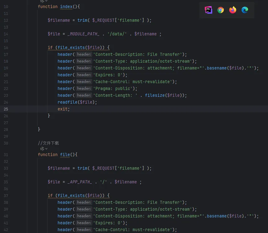 application/ruanjie_hr_pro/controller/manage/download.php中的index和file方法