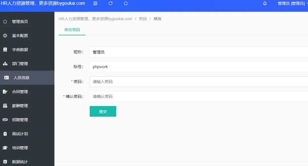 非常全面的一款HR人力资源系统,后台可以管理合同、薪资、员工、部门、招聘、面试、培训、数据统计等等