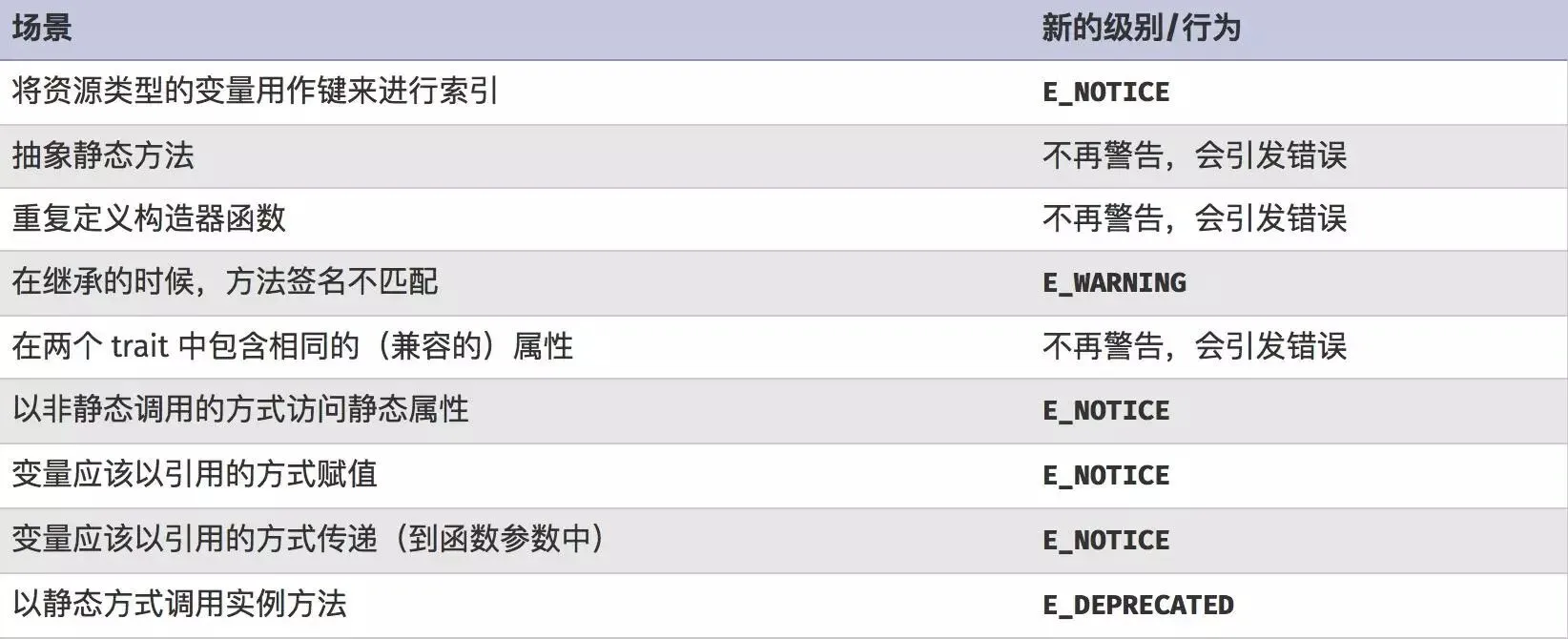 (5)E_STRICT 警告级别变更。