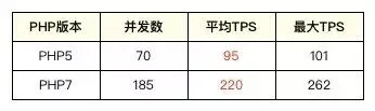 (1)PHP5与PHP7环境下,分别对我们的某个核心接口进行压测(压测数据由QA团队提供),相关数据如下: