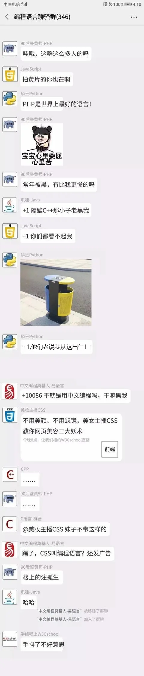 今天,W3Cschool开了一个脑洞,如果这些编程语言,加入了一个微信群,到底会有什么事情发生呢?