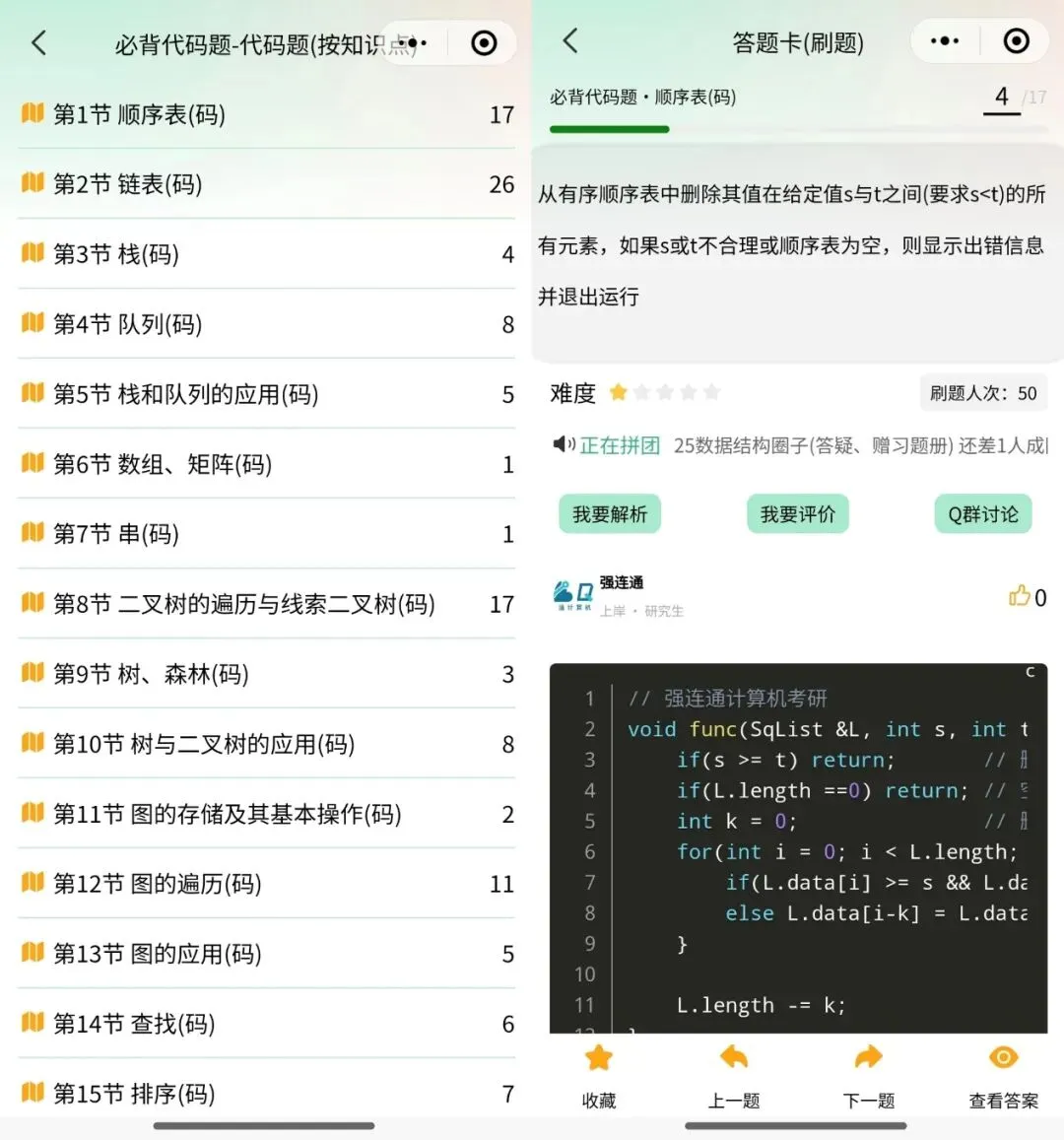 我们按知识点归类了15节代码题,整理了100+道必背代码题,注释详细。零碎时间可以锻炼代码思维,提升解题能力!