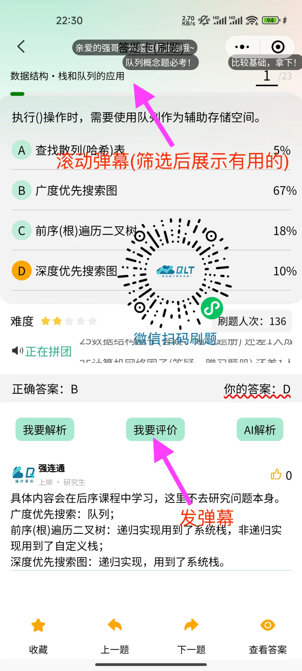 新增题目弹幕功能,筛选用户提交的最重要的关于本题的难点、重要程度等信息进行滚动展示。