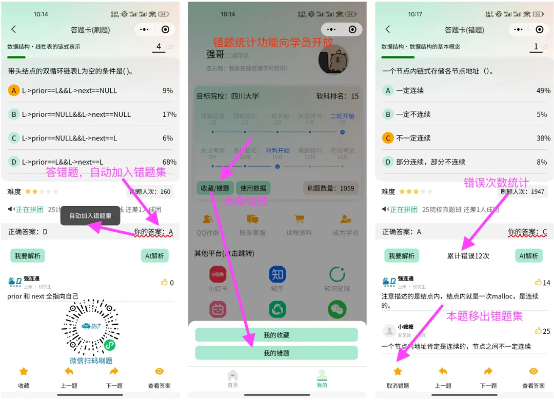 小程序题库和功能还在不断完善,同学们的反馈我们很重视!大家有任何建议或功能需求,都可在评论区留言~