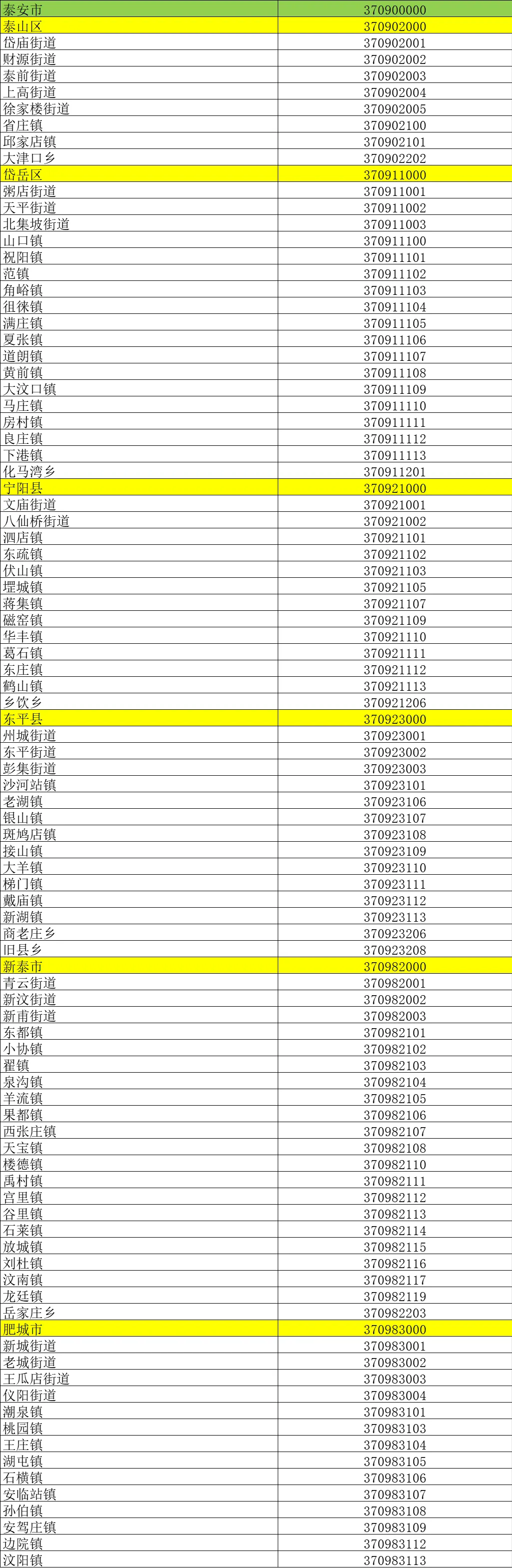 最新发布!泰安市行政区划代码来了!3709……来看看你老家是哪串数字?