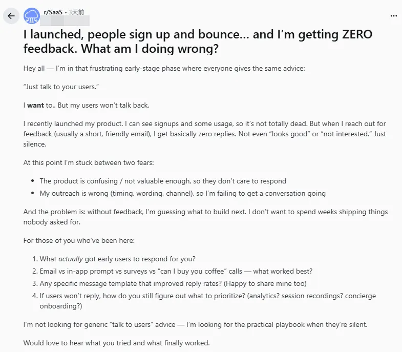 今天下午,我在 Reddit 的 r/SaaS 版块看到了这样一个问题: