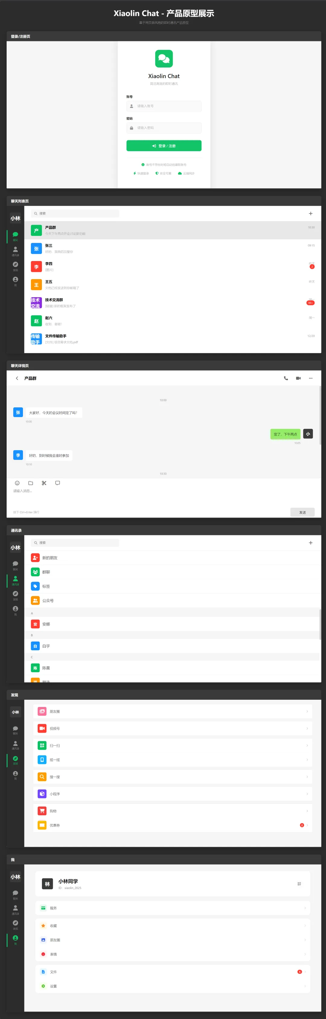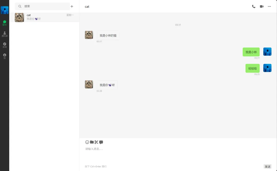 顺便说明一下,我这个微信风格的 IM Web 应用目前做的是 MVP,主要实现了IM 应用最核心的聊天功能,但整体架构和思路完全可以扩展到更多功能。