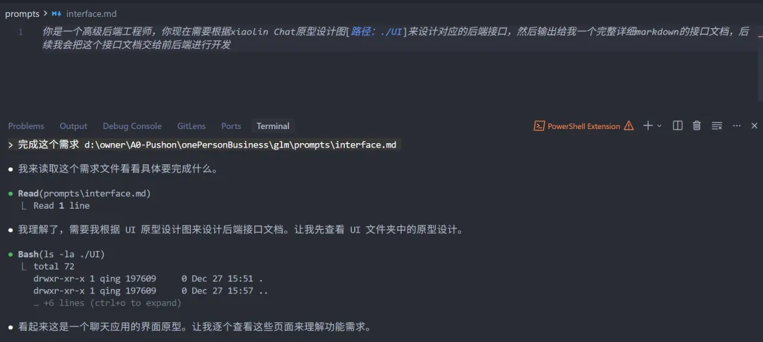 我在这里写好了生成接口文档的prompt,然后交给GLM-4.7去完成。