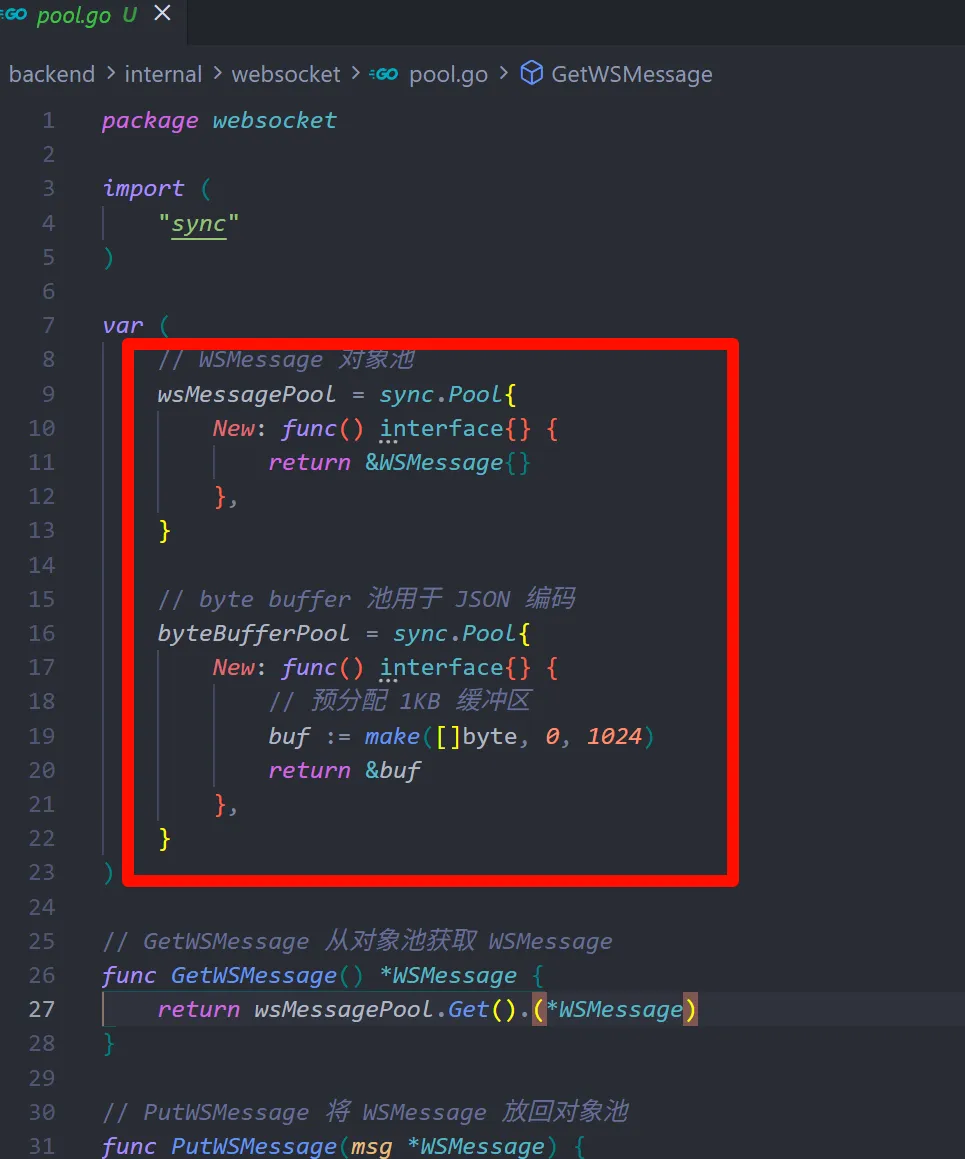 其次是增加对象池来减轻频繁分配对象的造成的GC压力。
