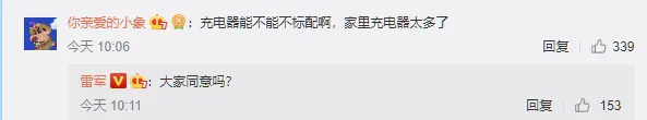 这个比较有意思,不标配充电器,因为现在其实很多人家里都有充电器,不知道大家对于这个米粉的意见有啥看法呢?你们觉得现在买手机还需要给一个充电器吗。