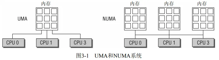 [1].UMA计算机(一致内存访问):将可用内存以连续方式组织起来(可能有小的缺口)。SMP系统中的每个处理器访问各个内存区都是同样快,也即速度相同。