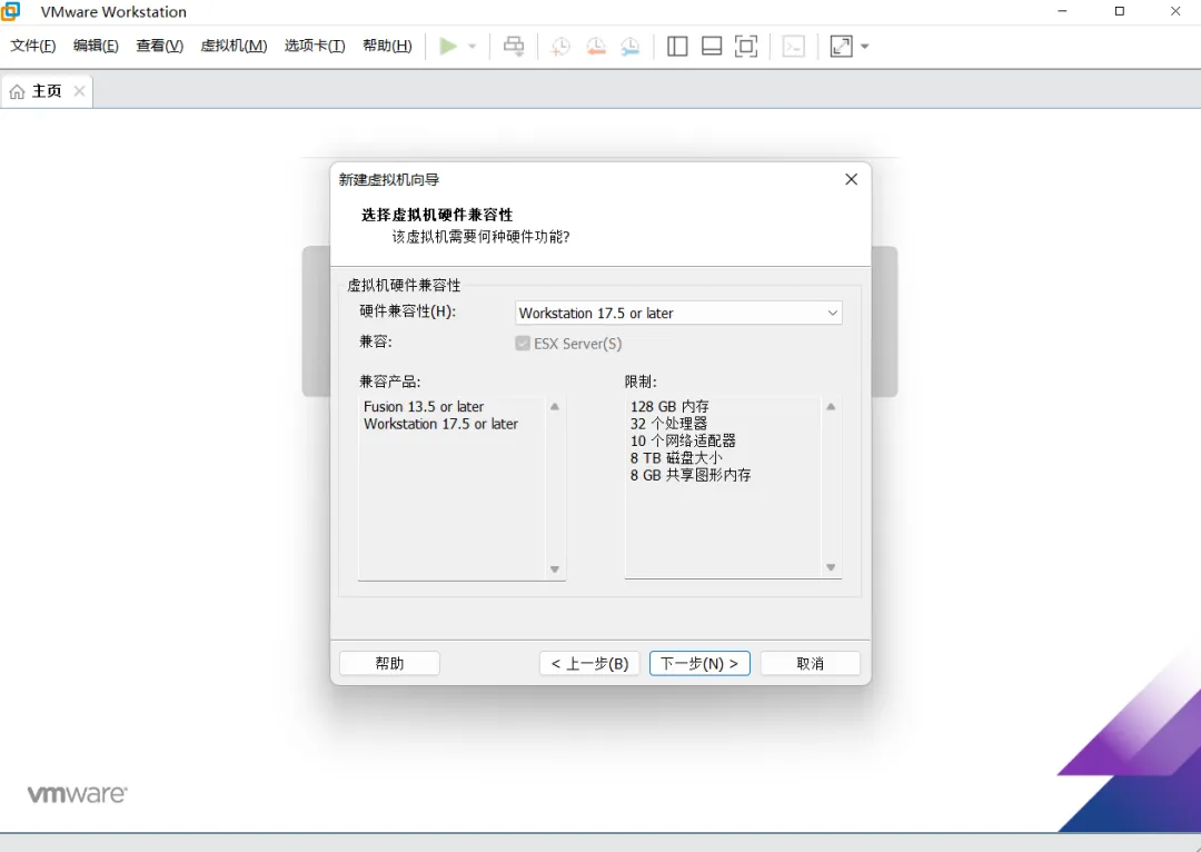 选择虚拟机硬件兼容性界面默认即可,然后点击“下一步”按钮。