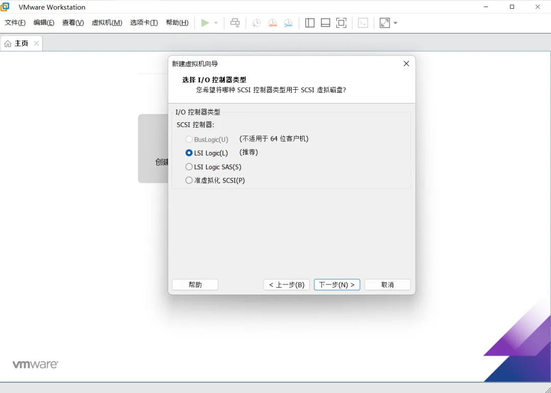 选择I/O控制器类型,SCSI控制器根据实际情况而定,然后点击“下一步”即可。