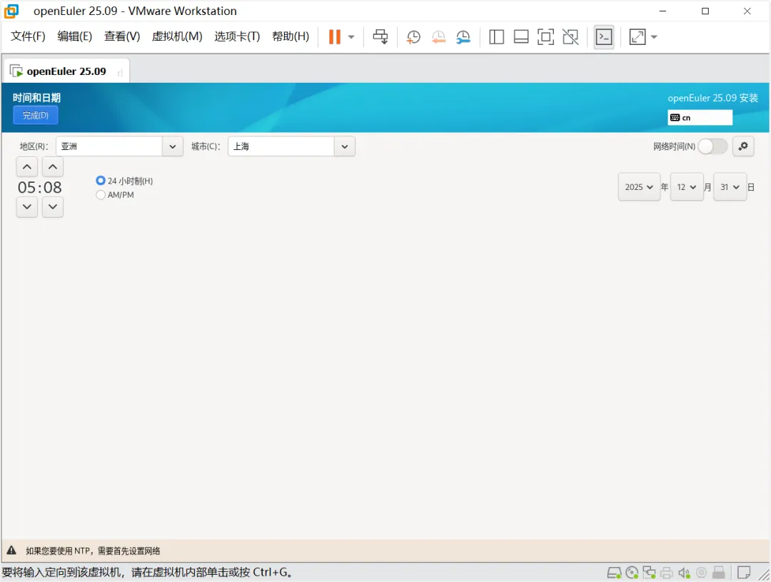 点击时间和日期,这边根据需求设置需要的语言时区。选择完成后点击“完成”按钮。