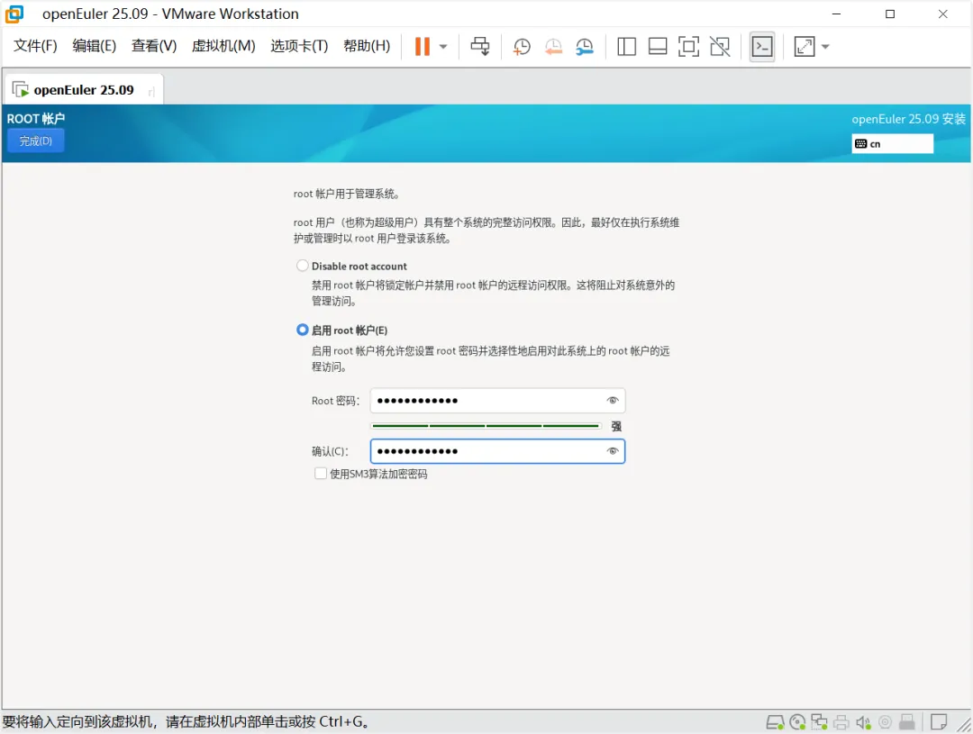 在用户设置点击Root用户设置,启动root账号并且设置密码,然后点击“完成”按钮。