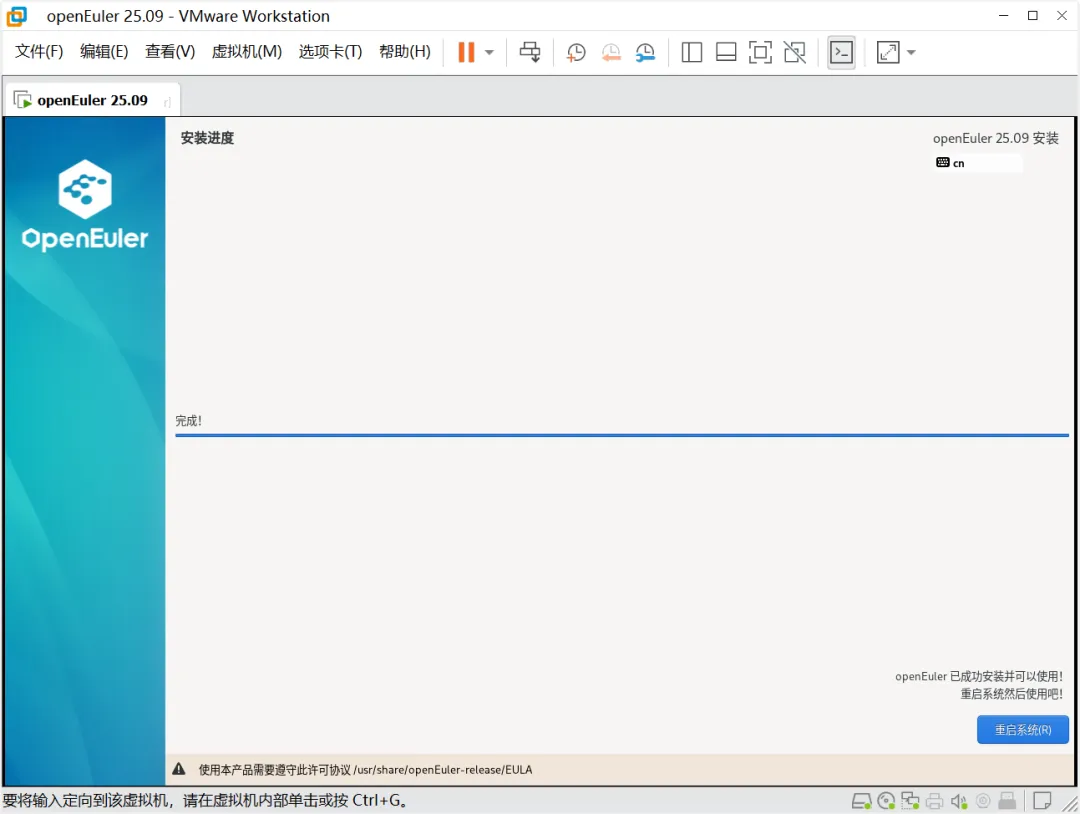 安装完成后,点击“重启系统”按钮。