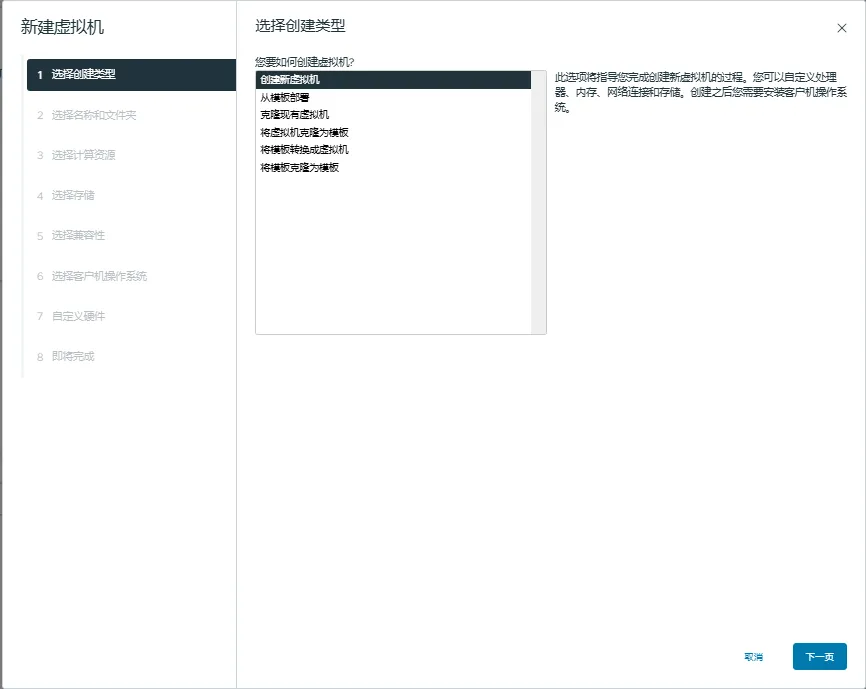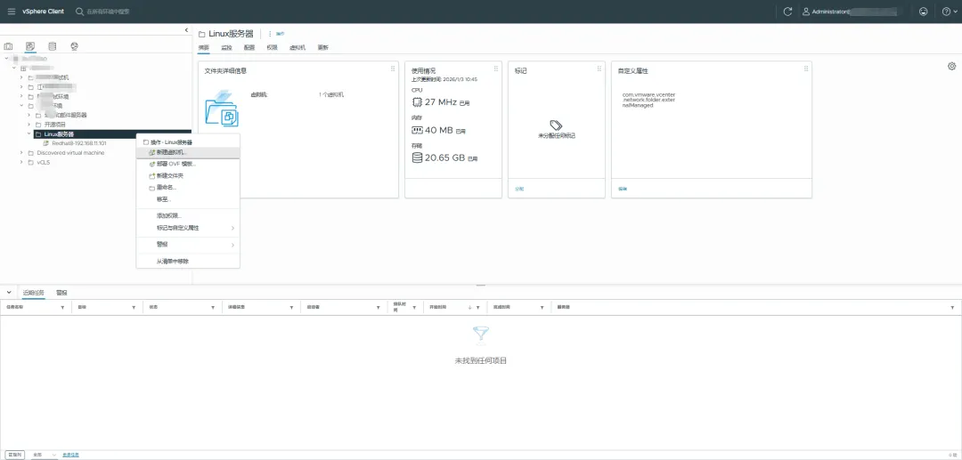 4.1、登录VMware虚拟化平台,选择ESXi主机或者虚拟机文件夹,右键新建虚拟机