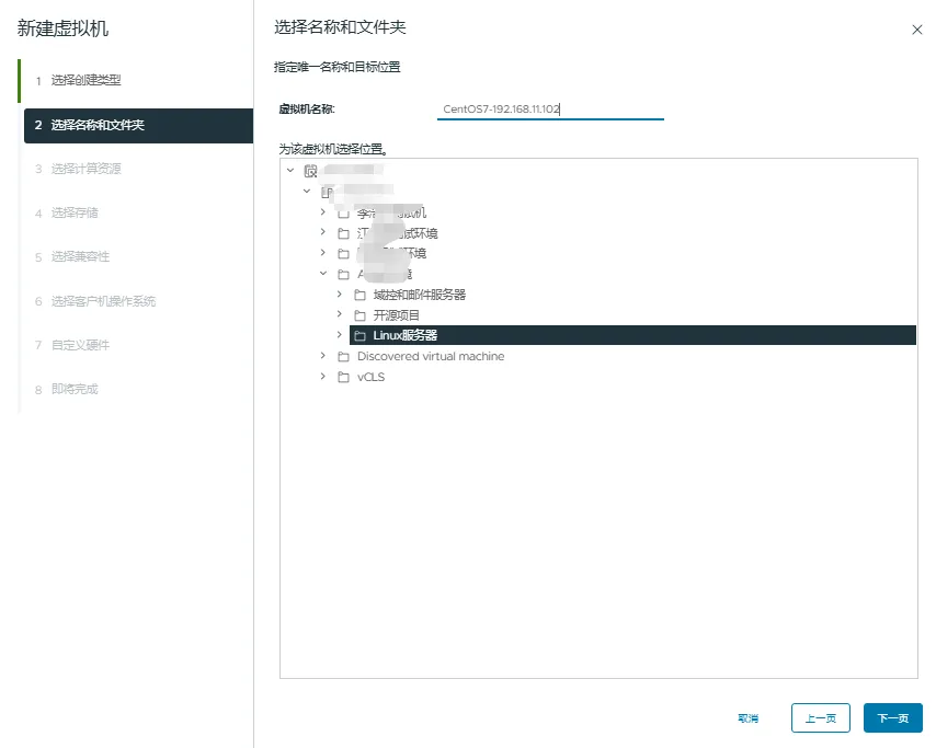 4.2、输入虚拟机名称,选择虚拟机存放位置,点击下一步