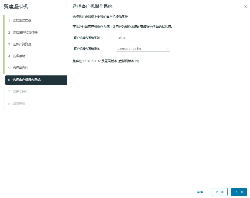 4.6、选择客户机操作系统系列和版本,点击下一步