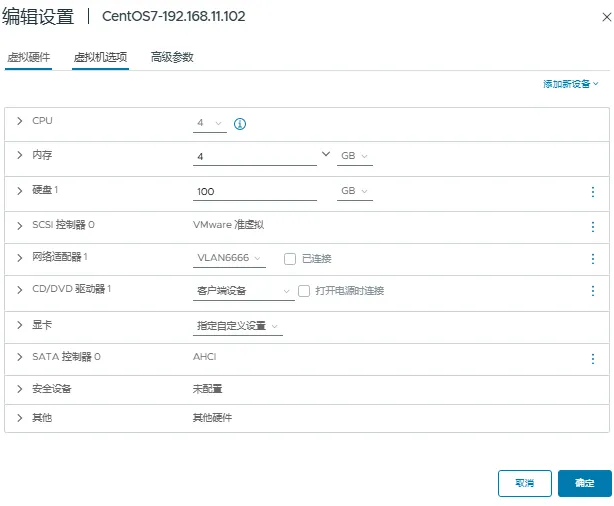 磁盘:100GB(精简置备)