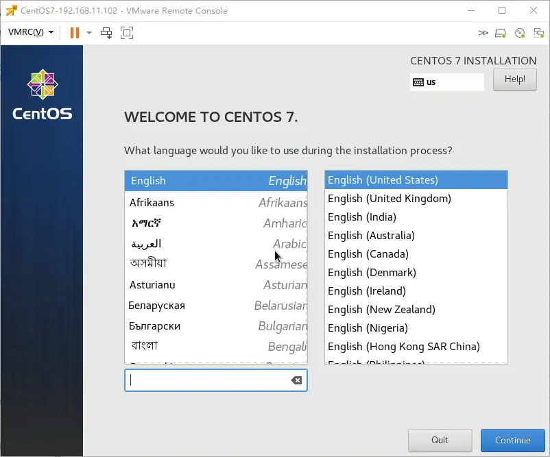 4.12、语言选择“English”,点击“Continue”
