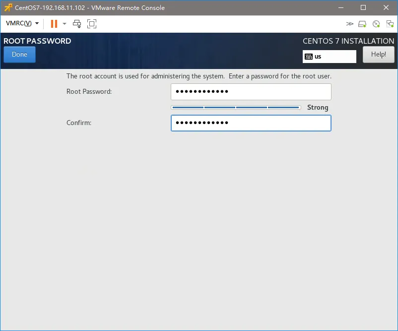 4.19、设置“root”密码,再点击“Done”