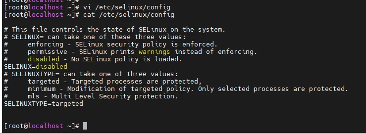 disabled # 彻底禁用SELinux(需重启系统配置生效)