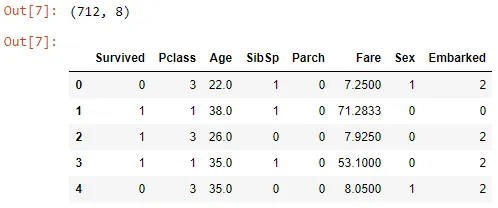 “Sex”被编码为“0,1”,“Embarked”被编码为“0,1,2”。LabelEncoder()类为我们完成了大部分工作。