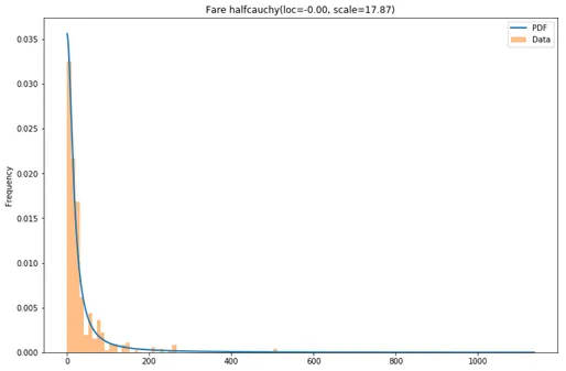 Age的最佳分布是fisk,Fare的最佳分布是halfcauchy,让我们来看看结果。