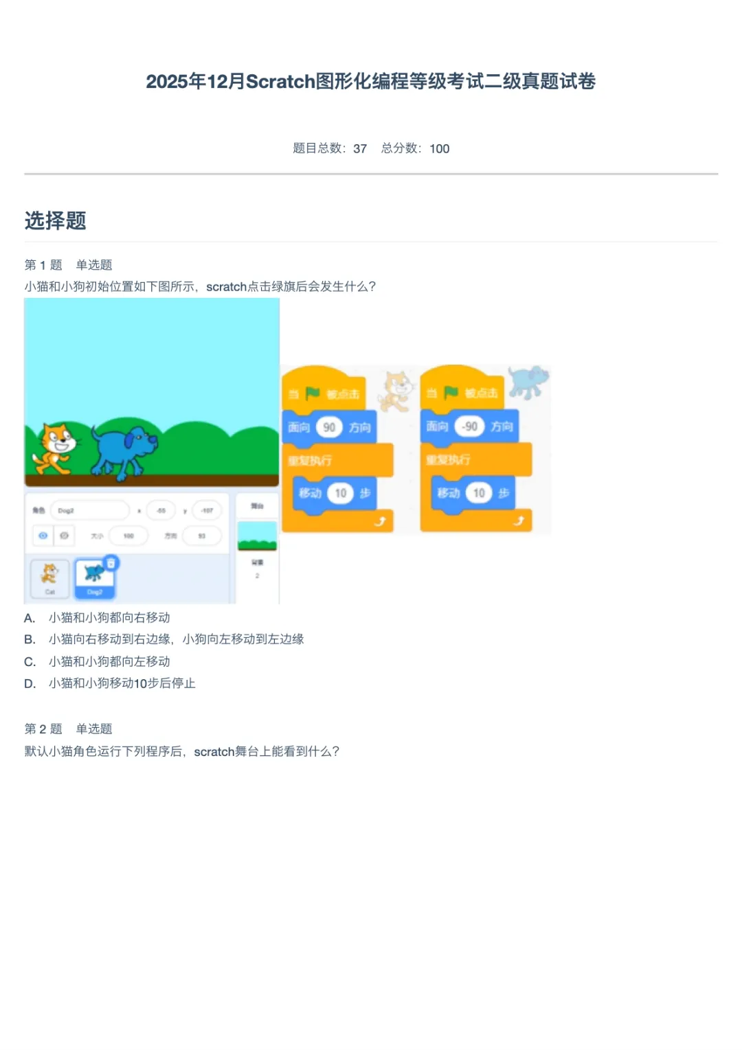 2025年12月Scratch图形化编程等级考试2级真题试卷。