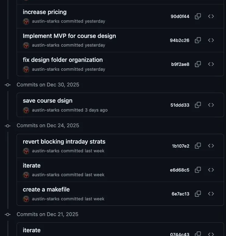12 月 30 日,我为自己的算法交易平台写了一份新功能的设计文档:一个完整的学习管理系统,类似 Coursera。视频课程、测验、阅读材料、动手练习、结业证书,一应俱全。
