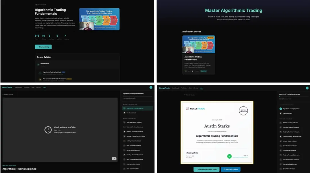 NexusTrade Learn 页面,在不到一天的时间里就完成上线并投入生产。