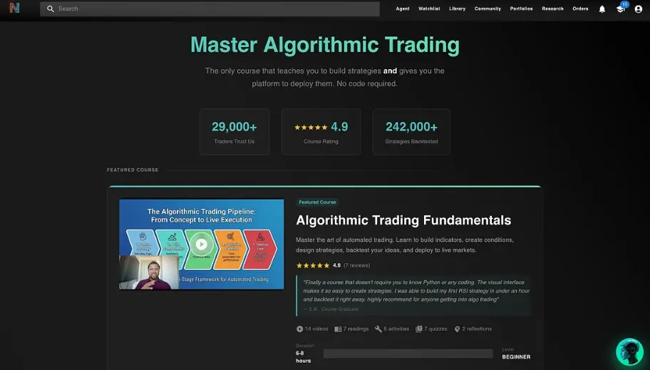 教学引导系统,手把手教用户从零创建算法交易策略、回测,并在 NexusTrade 平台上部署