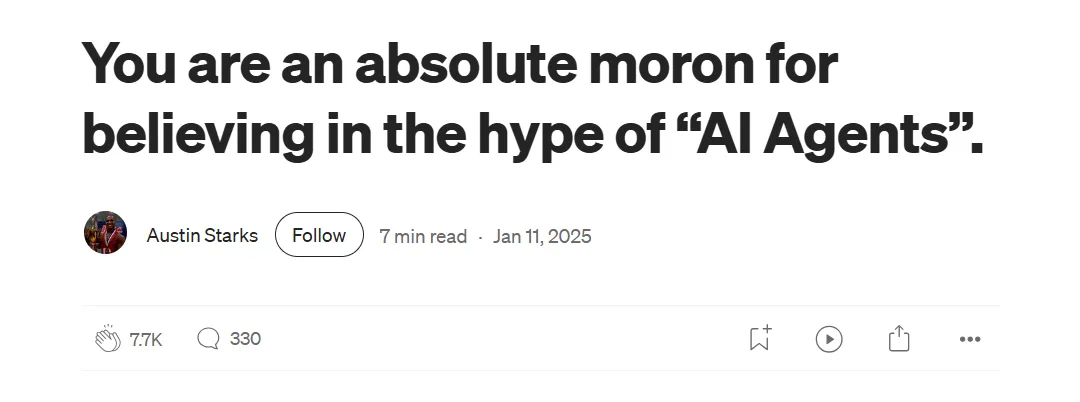 “如果你真的相信所谓的 ‘AI Agent’ 叙事,那你就是个彻头彻尾的傻子。”
