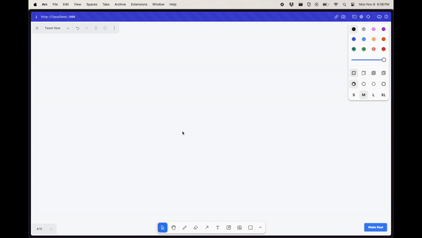程序的工作原理是,只需将当前的画布SVG转换成PNG,然后发送该png到gpt-4-vision,并附带带Tailwind返回单个HTML文件的指令。