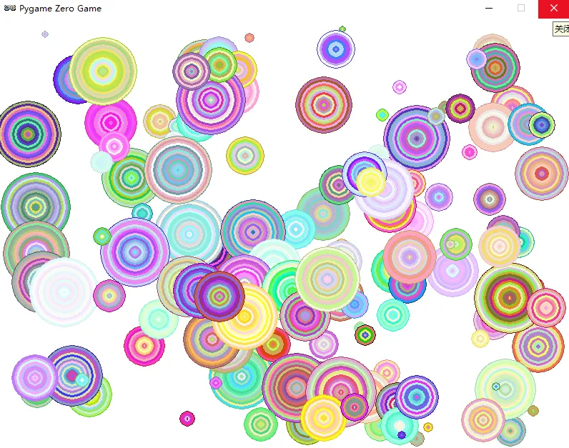 import pgzrun # 导入游戏库import random # 导入随机库WIDTH = 800 # 设置窗口的宽度HEIGHT = 600 # 设置窗口的高度balls = [] # 存储所有小球的信息,初始为空列表def draw(): # 绘制模块,每帧重复执行 screen.fill('white') # 白色背景 for ball in balls: # 绘制所有的圆 screen.draw.filled_circle((ball[0], ball[1]), ball[4], \ (ball[5], ball[6], ball[7]))#列表ball,ball[0]=x、ball[1]=y、ball[2]=speed_x、ball[3]= speed_ y、ball[4]=r、ball[5]=colorR、ball[6]=colorG、ball[7]=colorB for x in range(1, ball[4], 3): # 用同心圆填充 screen.draw.filled_circle((ball[0], ball[1]), \ ball[4]-x, (random.randint(ball[5], 255),\ random.randint(ball[6], 255), \ random.randint(ball[7], 255)))def update(): # 更新模块,每帧重复操作 for ball in balls: ball[0] = ball[0] + ball[2] # 利用x方向速度更新x坐标 ball[1] = ball[1] + ball[3] # 利用y方向速度更新y坐标 # 当小球碰到左右边界时,x方向速度反向 if ball[0] > WIDTH-ball[4] or ball[0] < ball[4]: ball[2] = -ball[2] # 当小球碰到上下边界时,y方向速度反向 if ball[1] > HEIGHT-ball[4] or ball[1] < ball[4]: ball[3] = -ball[3]def on_mouse_move(pos, rel, buttons): # 当鼠标移动时 if mouse.LEFT in buttons: # 当按下鼠标左键时 x = pos[0] # 鼠标的x坐标,设为小球的x坐标 y = pos[1] # 鼠标的y坐标,设为小球的y坐标 speed_x = random.randint(1, 5) # 小球x方向的速度 speed_y = random.randint(1, 5) # 小球y方向的速度 r = random.randint(5, 50) # 小球的半径 colorR = random.randint(10, 255) # 小球的3个颜色分量 colorG = random.randint(10, 255) colorB = random.randint(10, 255) # 存储小球所有信息的列表 ball = [x, y, speed_x, speed_y, r, colorR, colorG, colorB] balls.append(ball) # 把该小球的信息添加到balls中pgzrun.go() # 开始执行游戏