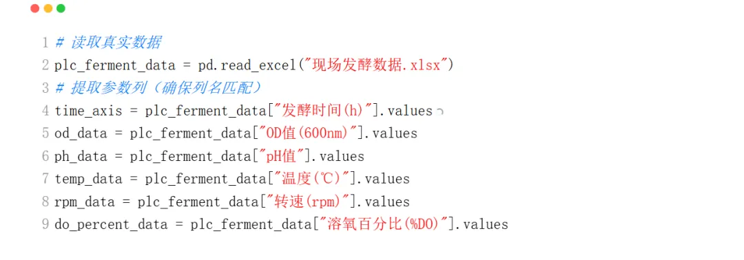 如果有现场采集的 Excel 数据,只需替换 “生成 PLC 级真实发酵参数数据” 部分: