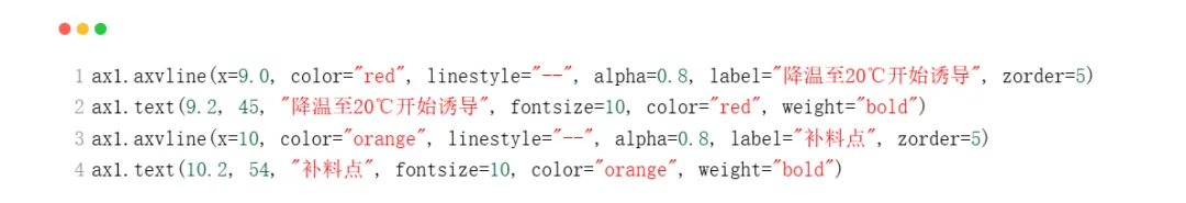 比如疫苗发酵补料点在 10h、诱导点在 9h,只需修改标注的 x 值: