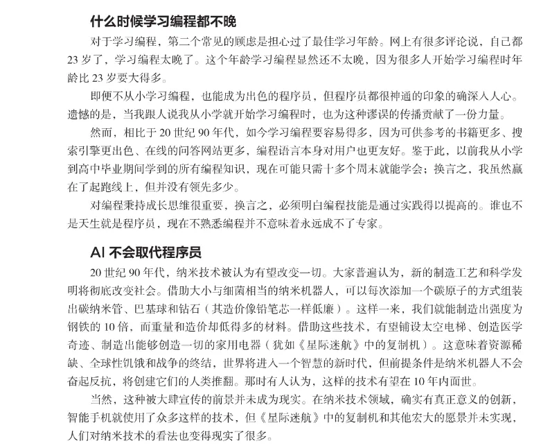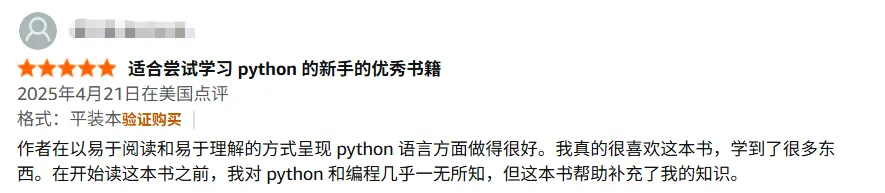 第2版中文版上市不久便售出超25万册,关键就在于它精准解决了新手的顾虑:作者凭借多年与新手交流积累的经验,用清晰简单的方式拆解Python知识,打破了 “学编程需要掌握大量数学知识” 的误解,同时消除了 “大龄学习者学不会编程” 的担忧,让编程学习真正没有门槛。