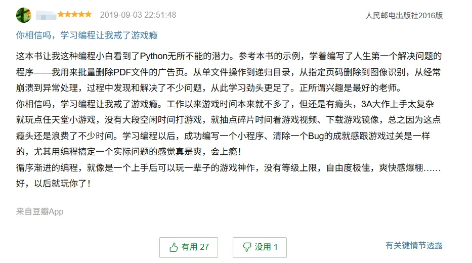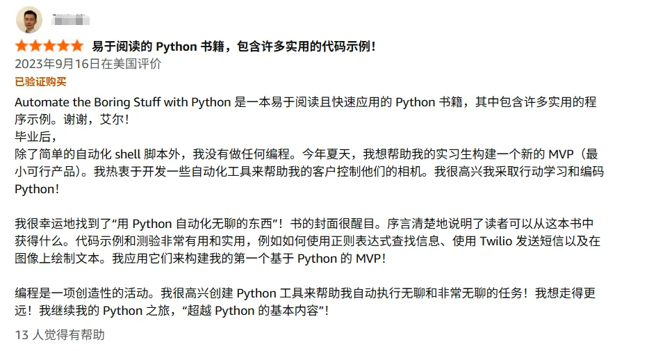“我认为很多教学资源的难度跳跃太快,而《Python编程快速上手:让烦琐工作自动化》是我用过的最棒的学习资料之一——整本书的难度始终保持在恰到好处的水平!”