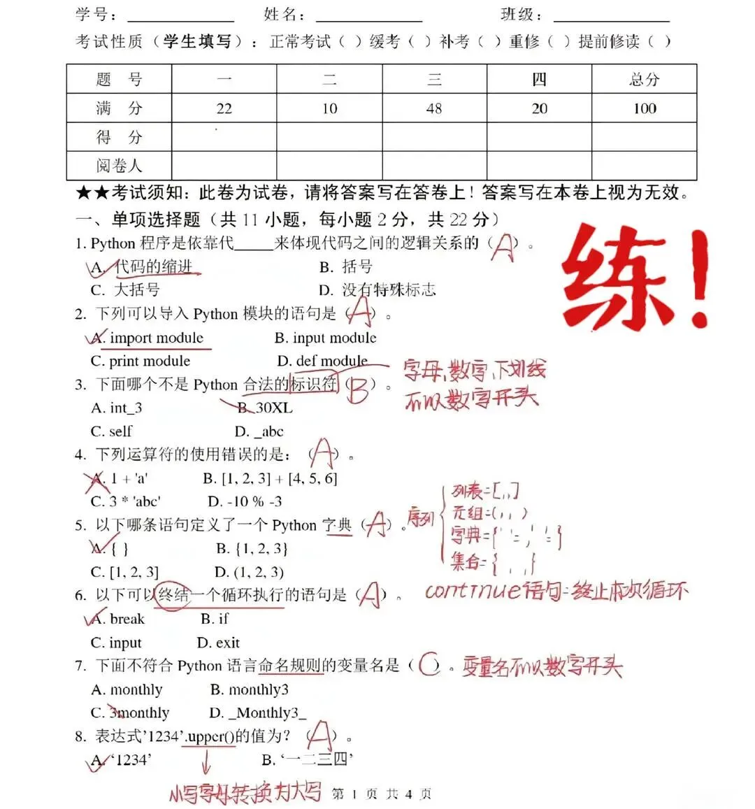 Python期末大作业!一周练完这100道练习题,你就腻害啦
