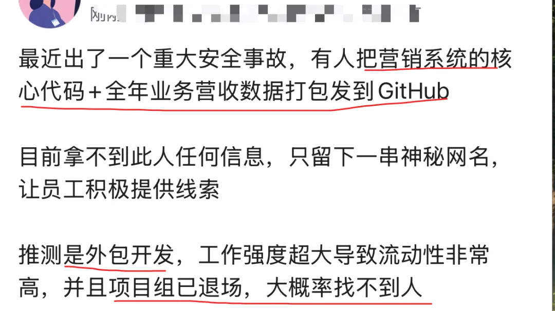 重大安全事故!有人把系统核心代码打包发到GitHub,只留下一串神秘网名,项目组已退场,大概率找不到人.