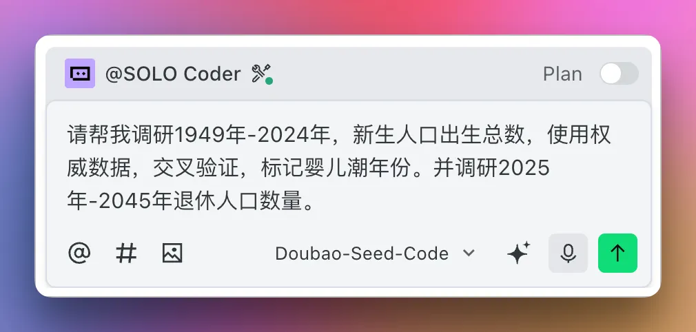 今天的案例是用TRAE分析1949年至今新生人口出生数据,并调研未来20年退休人口数据。