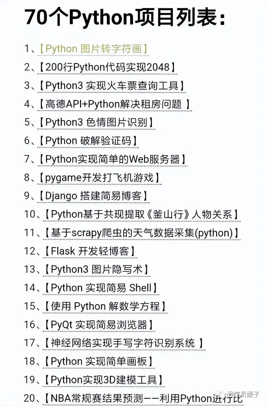 今天给大家分享70个Python实战项目,都是基础实例,经典实用,代码清晰可拿来即用,很适合学习提升使用,适用性广,实用性强。话不多说,一起来看看吧!