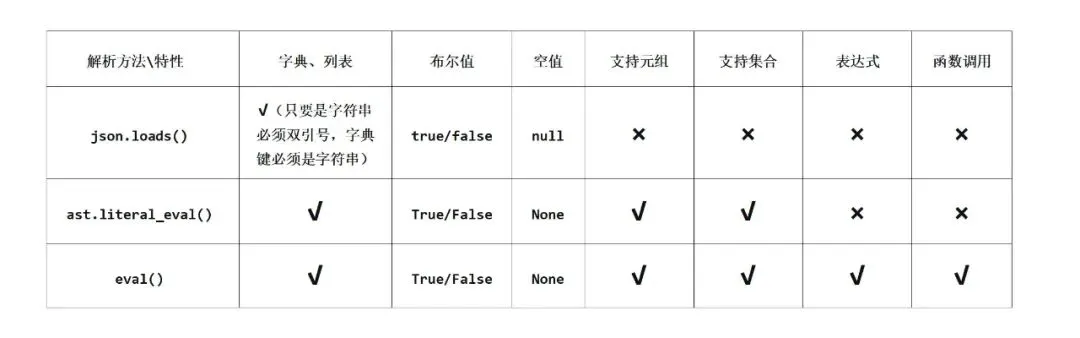 表示将json格式转化为Python里面的类型,可以用eval代替,json.load,ast.literal_eval(),eval()都可以处理字符串中的列表和字典,规则如下: