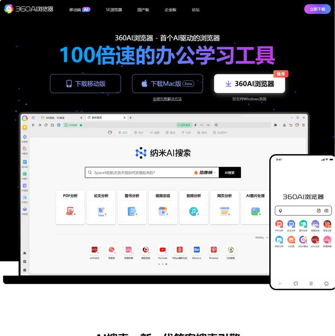 对于经常需要处理学术论文、行业研报,或者习惯观看长视频教程的职场人士与学生来说,纳米AI是一个非常懂中文互联网环境的选择。它在快速消化长内容和提取关键信息方面表现得特别突出,能有效帮我们解决“信息过载”的烦恼。
